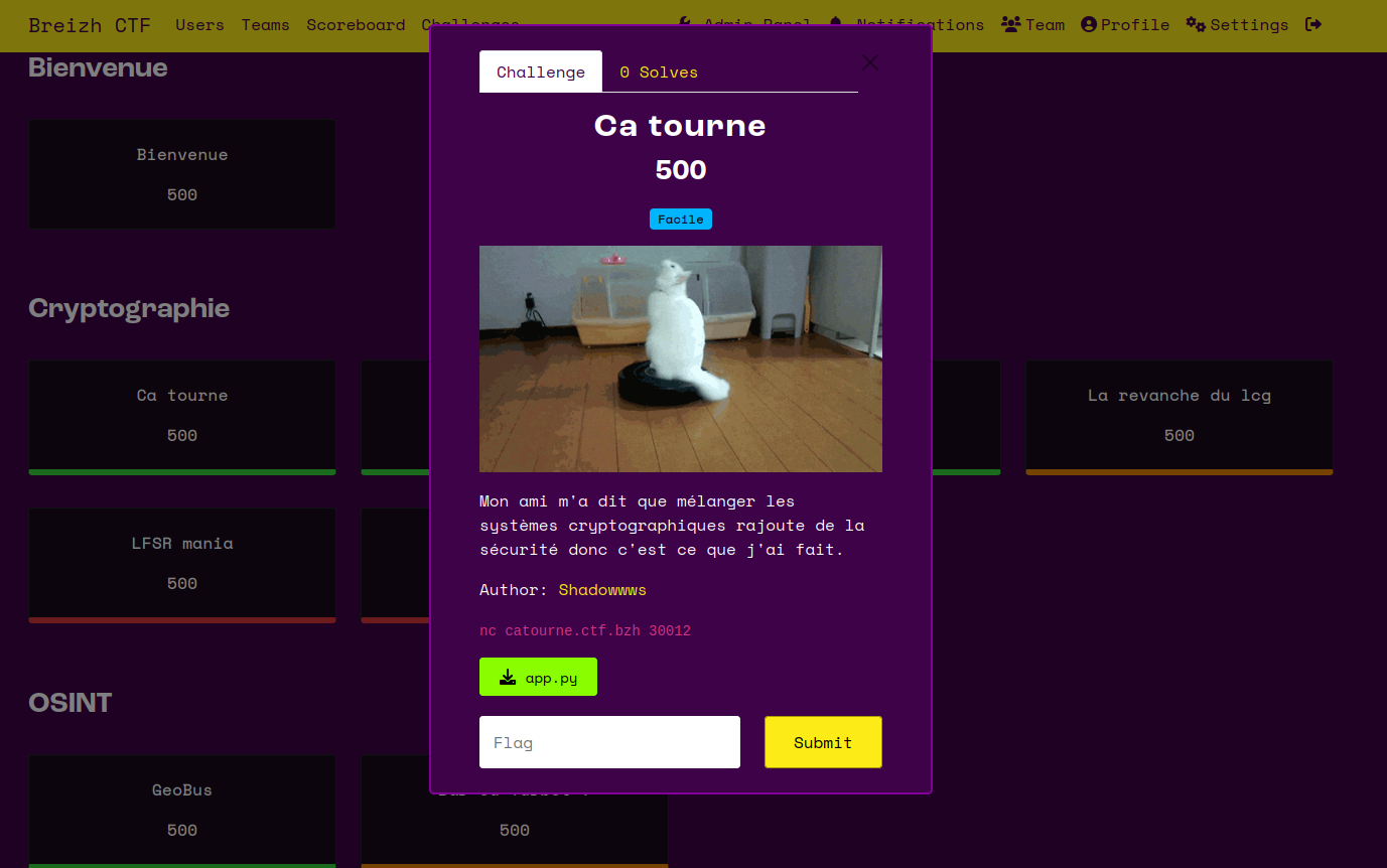 J’ai également pu participer à la validation et l’intégration d’autres challenges présents lors de la compétition.